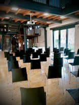 Wenn Sie die Mühle betreten, fällt das Augenmerk auf das noch erhaltene alte Mühlwerk. Dahinter erstreckt sich der Mühlenraum, der bei Eheschließungen zirka 80 Personen Platz bietet.